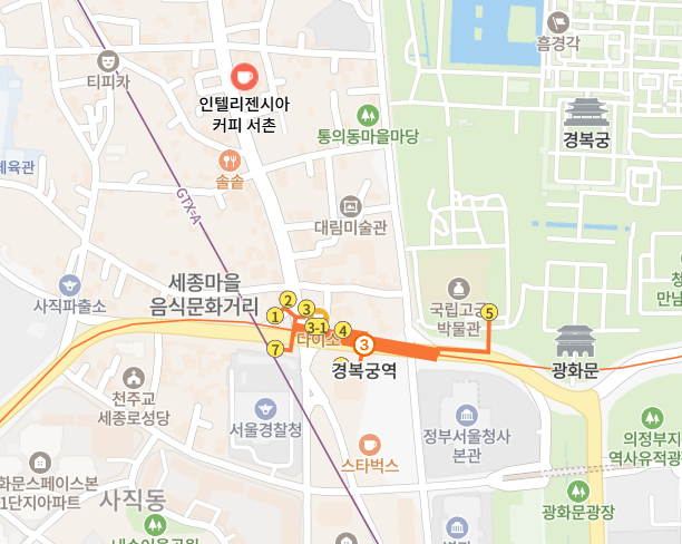 - 3호선 경복궁역 2번 출구에서 도보 약 10분